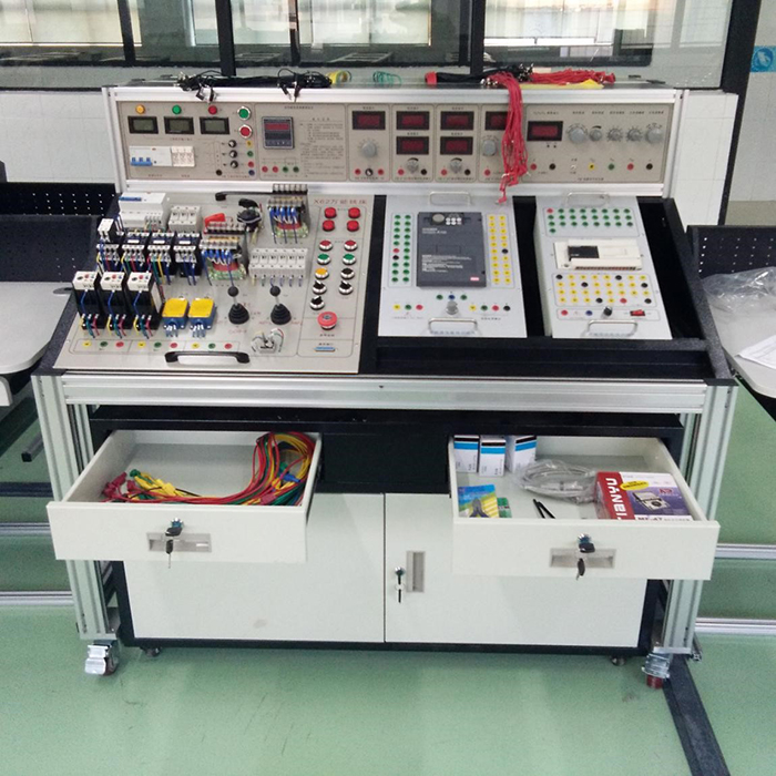 按生產(chǎn)現場(chǎng)的電氣控制柜設計,元件按生產(chǎn)實(shí)際中常用的控制電路配備,選用元件與生產(chǎn)、生活中實(shí)際使用的元件一樣,創(chuàng )設工作情景,實(shí)訓與生產(chǎn)實(shí)際的工作過(guò)程相同,得到的技能訓練全面,掌握的專(zhuān)業(yè)知識和技能牢固,對學(xué)生形成職業(yè)能力的訓練效果好。