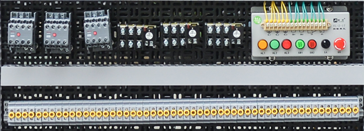 組成:繼電器、交流接觸器、熱繼電器、按鈕指示燈、導軌、線(xiàn)槽、雙層端子;