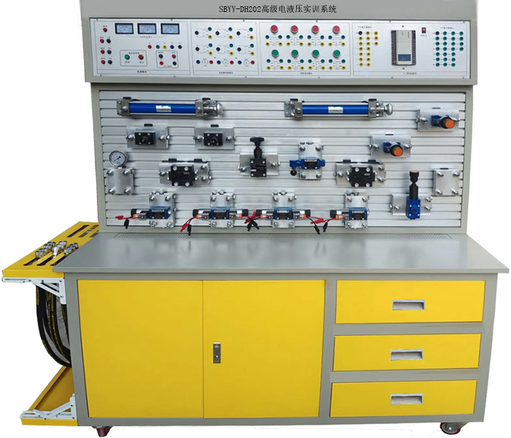 高級電液壓實(shí)訓系統、液壓實(shí)訓系統是以高等院!兑簤簜鲃(dòng)》的實(shí)驗教學(xué)大綱為指導,參考廣大師生的建議,結合職業(yè)培訓及專(zhuān)業(yè)進(jìn)修對流體傳動(dòng)的要求而精心設計研發(fā)的。本實(shí)訓系統配置了各種液壓控制閥和液壓缸等液壓元件及相關(guān)工具,通過(guò)說(shuō)明書(shū)學(xué)習理論知識并觀(guān)察液壓元件的外形特點(diǎn),加深學(xué)生對液壓元件結構及工作原理的理解,在此基礎上安裝、調試整個(gè)液壓傳動(dòng)系統。該實(shí)訓系統采用敞開(kāi)式結構的操作板,各種液壓元件可靈活安裝于操作板上,元件間用液壓軟管連接,液壓軟管的快換接頭可使訓練實(shí)驗即快速又安全的進(jìn)行。該系統除了可以進(jìn)行常規的液壓基本控制回路實(shí)驗外,還可進(jìn)行液壓控制技術(shù)應用實(shí)驗、液壓技術(shù)課程設計,以及可編程控制器(PLC)學(xué)習及其基本應用實(shí)驗等,是機電完美結合的典型實(shí)驗設備。