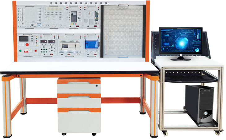 實(shí)訓裝置由控制屏、實(shí)訓桌、主機實(shí)訓組件、PLC模塊、觸摸屏模塊、實(shí)訓模塊(含豐富的工業(yè)現場(chǎng)設備模擬實(shí)訓對象)、變頻器模塊等組成。