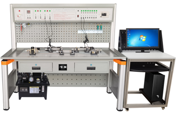 液壓綜合實(shí)驗臺由實(shí)驗桌、實(shí)驗操作區、網(wǎng)孔工具掛板、液壓泵站、常用液壓元件、主控機箱、電腦桌等幾部分組成。