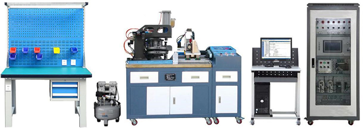1.實(shí)訓臺:采用鐵質(zhì)雙層亞光密紋噴塑結構,包括控制區域和機械裝調區域兩部分?刂茀^域主要由控制面板、電源轉換接口、控制按鈕等組成;機械裝調區域采用鑄件操作臺面,學(xué)生可在上面安裝和調整各種機械機構。