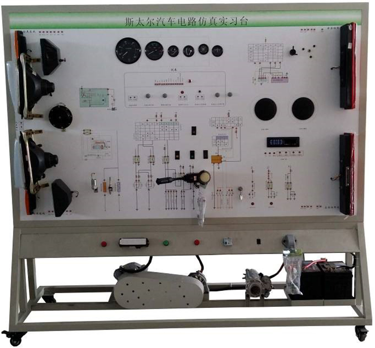 2.設備面板采用耐創(chuàng )擊、耐污染、防火、防潮的高級鋁塑板,表面經(jīng)特殊工藝噴涂底漆處理;面板打印有永不褪色的彩色電路圖;學(xué)員可直觀(guān)對照電路圖和實(shí)物,認識和分析汽車(chē)整車(chē)電器各系統的工作原理。