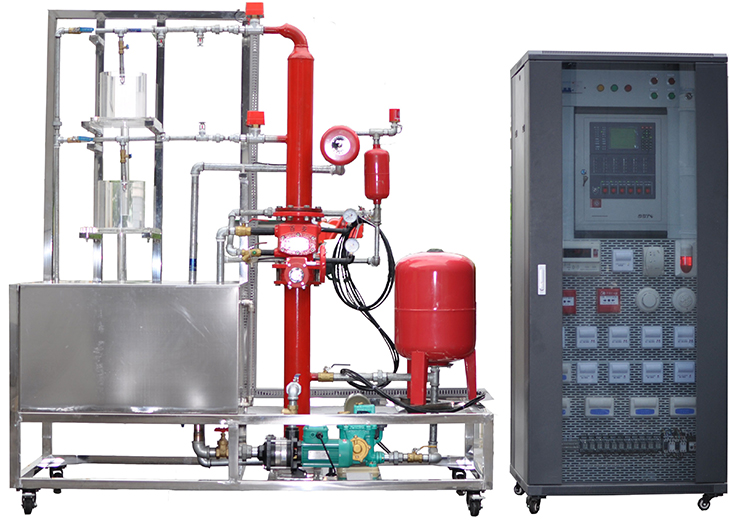 "自動(dòng)消防報警噴水滅火系統實(shí)訓裝置"依據《自動(dòng)噴水滅火系統設計規范》相關(guān)標準設計,該系統具有噴水滅火系統典型結構,能夠完成火災探測,火災報警,現場(chǎng)滅火、消防聯(lián)動(dòng)報警主機的控制及設置等演示性實(shí)訓項目,同時(shí)還能清楚的展示噴淋滅火系統的典型設備構成和系統工作原理,通過(guò)該裝置的操作學(xué)習,學(xué)生可以對樓宇中噴水滅火系統的結構有一個(gè)全面的了解,掌握建筑物內部主要滅火設備的應用,熟悉樓宇中濕式報警閥、各類(lèi)探測器、智能型輸入輸出模塊、火災顯示盤(pán)、水流指示器、壓力開(kāi)關(guān)等設備的結構和原理,熟悉滅火系統的控制原理和工作過(guò)程。