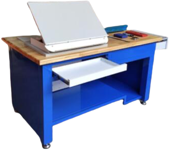 規格:1400×700×800mm,尺寸偏差±10mm(桌體靜電噴塑顏色:中藍色整體采用整裝鋼木結構,桌面為整體平整設計,有幾個(gè)部分組成,可傾角的繪圖桌面,桌面右側為大理石平臺(300*400*25mm);繪圖桌面下為鍵盤(pán)抽,右支架腳板旁邊為主機托板。