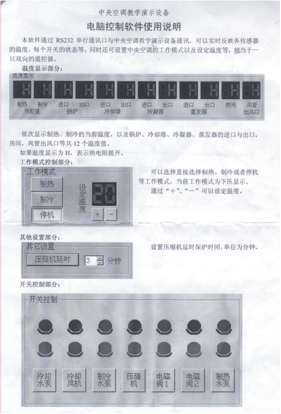 14、中央空調控制方法,即可通過(guò)實(shí)驗臺控制,又可通過(guò)電腦控制。
