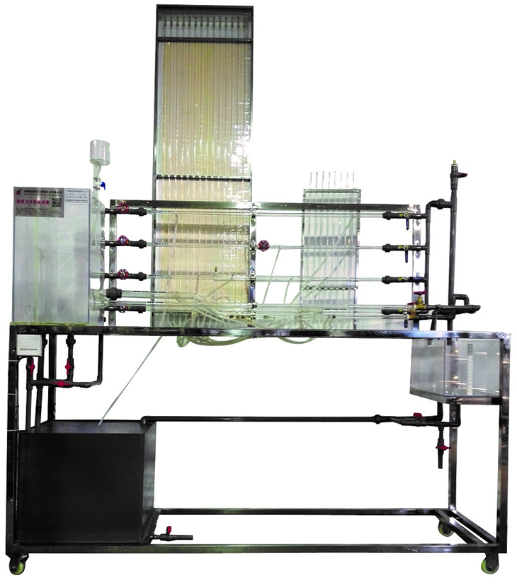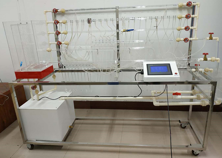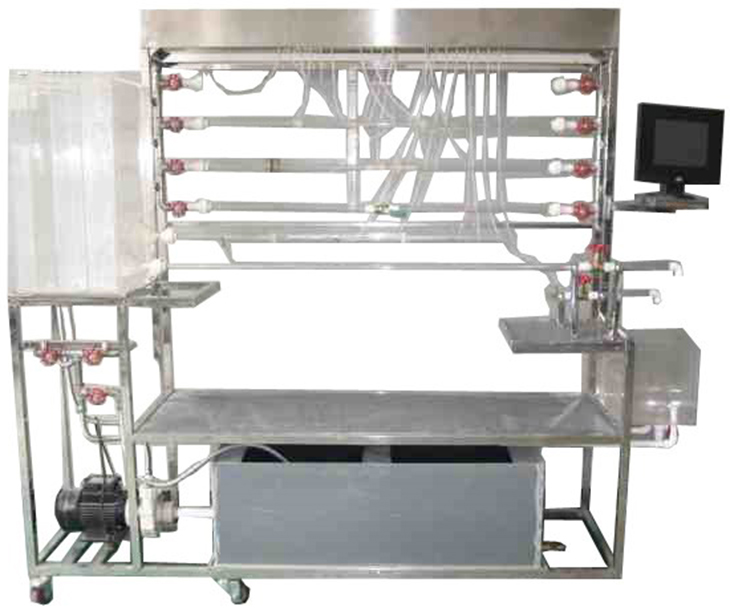 移動(dòng)式不銹鋼實(shí)驗臺、儲水箱;雷諾測試管;伯努利測試管;沿程阻力系數測試管;突擴、突縮測試管;閥門(mén)局部阻力系數測試管;孔板流量計測試管;文丘里流量計測試管;和皮托管測試管;測壓板直接顯示總水頭線(xiàn)和測壓管水頭線(xiàn);壓力傳感器24套、流量傳感器4套、溫度傳感器1套、觸摸屏、測壓板。