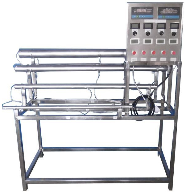 不同長(cháng)度和直徑的電鍍紫銅管四根,管內設置加熱器,固體調壓模塊無(wú)機調節加熱,測溫傳感器,電功率測試數顯儀表,萬(wàn)能信號輸入巡檢儀顯示溫度,各管配有溫度控制儀表,不銹鋼臺架及控制屏等。