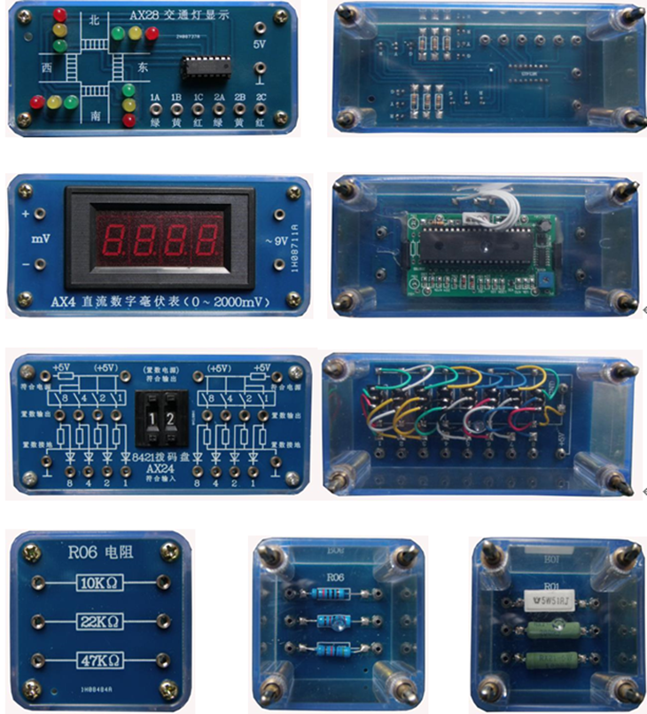 (透明電子元件模塊示例圖,共9塊板,140多只透明有機塑料封閉元件盒)