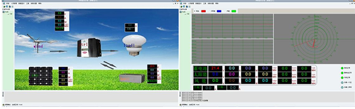 ◆ 顯示內容:蓄電池電壓、風(fēng)機電壓、光伏電壓、風(fēng)機電流、光伏電流、風(fēng)機功率、光伏功率,能量模擬圖,當前風(fēng)速(米/秒),當前風(fēng)向(度),當前風(fēng)力資源平估。