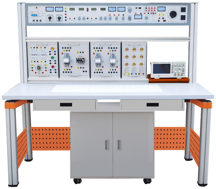 主機箱為鐵質(zhì)雙層亞光密紋噴塑結構,鋁質(zhì)面板,為實(shí)訓提供交流電源、直流穩壓電源、恒流源、函數信號發(fā)生器、測試儀表及實(shí)訓器件等。
