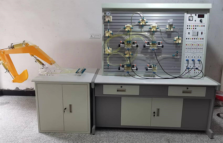 透明液壓挖掘機系統與PLC控制實(shí)訓裝置采用透明有機玻璃外殼的液壓元件及防漏透明油管,能清晰直觀(guān)的觀(guān)察到液壓元件內部結構和流動(dòng)過(guò)程?烧鎸(shí)演示挖掘機工作裝置的挖掘、卸料、提升等動(dòng)作、多種控制方式(手動(dòng)、繼電器、PLC)的基本回路實(shí)訓。適合大中專(zhuān)院校機電類(lèi)專(zhuān)業(yè)"液壓傳動(dòng)"、"液壓與氣壓傳動(dòng)"等課程的教學(xué)實(shí)訓需要。