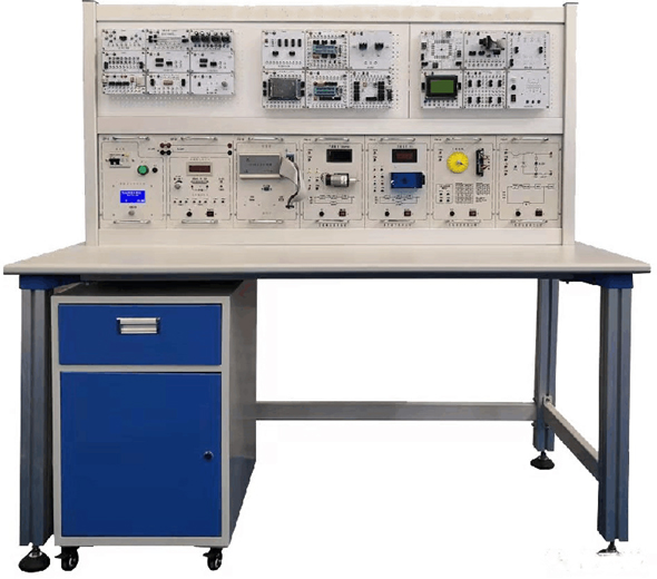 實(shí)訓臺架應采用工業(yè)型材結構,所有型材表面光滑,無(wú)凹槽,采用兩層結構,分別放置電源模塊、實(shí)訓模塊及實(shí)訓掛板等。臺架兩側提供有AC220V電源插座接口,可為外配儀器設備提供工作電源。