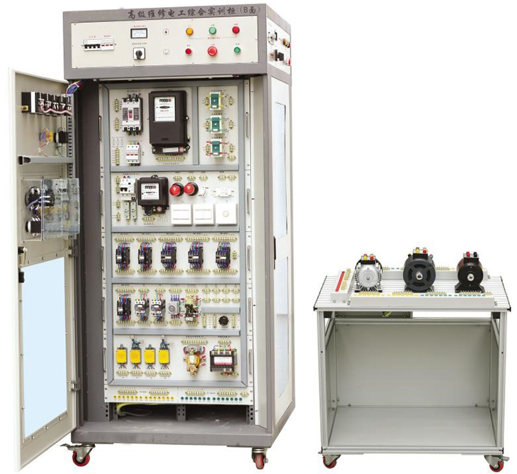 高級維修電工綜合實(shí)訓柜,電工實(shí)訓操作臺是根據中、高級維修電工應具備的技能要求進(jìn)行設計的,并適當增加了新技術(shù)。包含了繼電接觸控制、低壓配電、儀表照明、電機拖動(dòng)、可編程控制器、觸摸屏、變頻調速、直流調速、電力電子、自動(dòng)控制等技術(shù)。提高學(xué)生對電氣系統的施工設計、工藝安裝、接線(xiàn)調試、程序設計、運行維護、故障維修等綜合能力?蛇M(jìn)行維修電工基本技能和核心技能的訓練,也可以進(jìn)行創(chuàng )新技能的拓展訓練,完成多層次的考核,切實(shí)提高學(xué)生的技能水平。