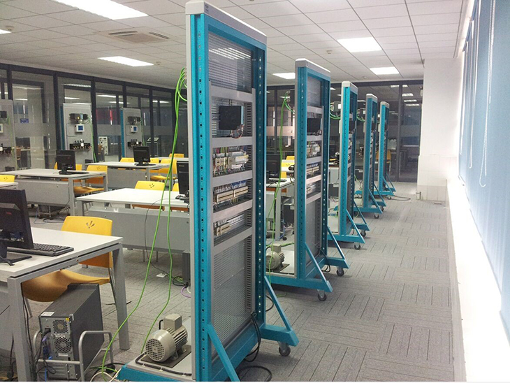 PLC電氣控制應用實(shí)訓平臺、PLC電氣控制實(shí)訓裝置、突出職業(yè)教育的特點(diǎn),以能力培養為目標,注重PLC的實(shí)際應用,以項目驅動(dòng)構建,提供“教、學(xué)、做”一體化的可編程控制器實(shí)訓項目。電氣控制與PLC應用技術(shù)虛實(shí)一體化實(shí)訓裝置包含電氣工藝實(shí)操訓練、PLC控制電路的選擇與搭建、變頻與觸摸屏控制、伺服與步進(jìn)驅動(dòng)控制等真實(shí)的硬件訓練項目,適用于機電一體化技術(shù)、電氣自動(dòng)化技術(shù)、機械制造與自動(dòng)化、工業(yè)機器人技術(shù)等專(zhuān)業(yè)中的《電氣控制系統設計》、《機電控制技術(shù)》、《電機與電氣控制技術(shù)》、《PLC控制系統設計》等核心課程的理論教學(xué)與實(shí)踐教學(xué)。PLC電氣控制應用實(shí)訓平臺、PLC電氣控制實(shí)訓裝置、培養學(xué)生在設備認知、系統組合設計、設備安裝接線(xiàn)、參數設置與調試、組合電路控制、編程與組態(tài)監控、運行與維護等方面的專(zhuān)業(yè)技術(shù)能力。硬件工藝實(shí)訓要求具備設備認知、系統設計、線(xiàn)纜敷設、設備安裝、工藝接線(xiàn)、變頻控制、伺服控制、觸摸屏調試、PLC編程、Wincc組態(tài)監控等內容。