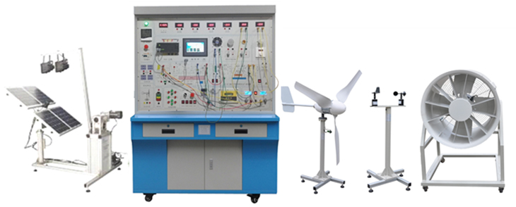 風(fēng)光互補發(fā)電測量系統主要由風(fēng)力發(fā)電機組、太陽(yáng)能光伏電池組、控制器、蓄電池、逆變器、交流直流負載、開(kāi)關(guān)控制模塊、環(huán)境監測模塊、儀表顯示等部分組成,通過(guò)PLC控制、觸摸屏和變頻器作為控制核心,帶有A/D、D/A模塊、模擬量輸入/輸出模塊、交流電機變頻調速系統。系統于風(fēng)能發(fā)電、光伏發(fā)電為一體的教學(xué)實(shí)訓系統;各系統通過(guò)連接電纜進(jìn)行連接,形成一套可完成風(fēng)力及光伏發(fā)電、同步并網(wǎng)、離網(wǎng)電源的實(shí)驗及教學(xué)演示。幫助學(xué)生理解太陽(yáng)能并網(wǎng)、離網(wǎng)及風(fēng)力發(fā)電系統的原理,從而起到學(xué)習工程實(shí)際應用技能的作用。
