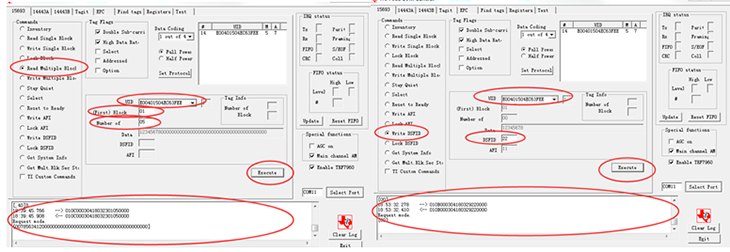 尋找單張、多張標簽及標簽總量 讀寫(xiě)單個(gè)塊操作 鎖定標簽塊操作 讀寫(xiě)多個(gè)塊數據 設置標簽進(jìn)入靜默狀態(tài) 設置標簽處于被選擇狀態(tài) 復位標簽進(jìn)入準備狀態(tài) 向標簽寫(xiě)應用標志位 鎖定應用標志位 寫(xiě)數據存儲格式標志位 鎖定數據存儲格式ID標志位 獲取標簽信息 獲取多個(gè)塊安全狀態(tài) |