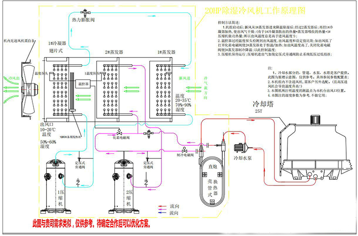 4、調溫除濕機是提供一種可以在不同室內、外溫度下對室內進(jìn)行供熱、制冷和除濕以滿(mǎn)足室內溫濕度要求的調溫調濕方法及其設備,可以提高除濕調溫系統的性能,擴大除濕調溫系統的適用范圍。