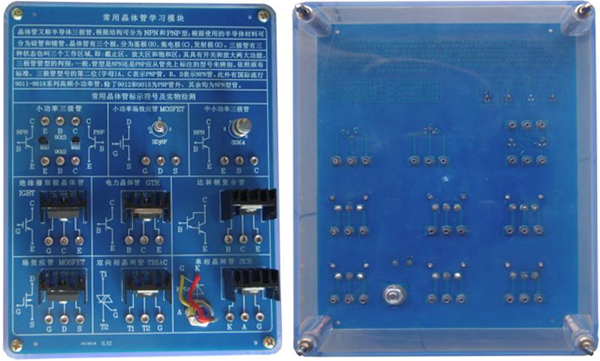 底盒使用190mm×145mm的開(kāi)模有機透明塑料底盒,模塊面板采用印制電路板PCB工藝,可以直觀(guān)看到器件的實(shí)物及相關(guān)的原理介紹。對于典型應用及易損器件安裝在面板背面,透過(guò)透明底盒能夠看到器件實(shí)物,方便感性認識、檢測測試,同時(shí)也能防止器件的損傷。