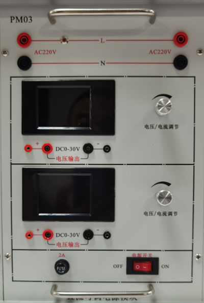 提供鐵芯變壓器一只(50VA、36V/220V)、電流插座等,原、副邊均設有保險絲及電流插座,方便測試并能可靠保護防止變壓器損壞。