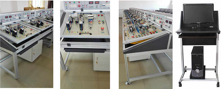 實(shí)驗操作面:采用工業(yè)鋁型材,連接實(shí)驗臺與電源控制屏,與實(shí)驗臺成36度斜面。內置機床電氣模塊放置區,采用鋼材做骨架,外表面噴涂彩色環(huán)氧聚塑。