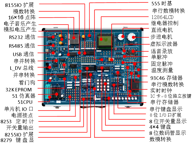3)實(shí)驗電路單元應盡可能獨立開(kāi)放,如開(kāi)放式鍵盤(pán), 開(kāi)放式顯示器,開(kāi)放式串口等,為適應多種方式實(shí)驗提供可能。