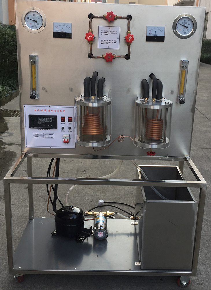 可視化制冷循環(huán)演示裝置,制冷循環(huán)實(shí)驗實(shí)訓裝置,采用透明耐壓玻璃作殼體,可觀(guān)察制冷系統中的壓縮機、蒸發(fā)器、冷凝器等組件,可直接觀(guān)察到制冷劑的蒸發(fā)和冷凝現象,并通過(guò)進(jìn)出水溫的變化觀(guān)測制冷效果。