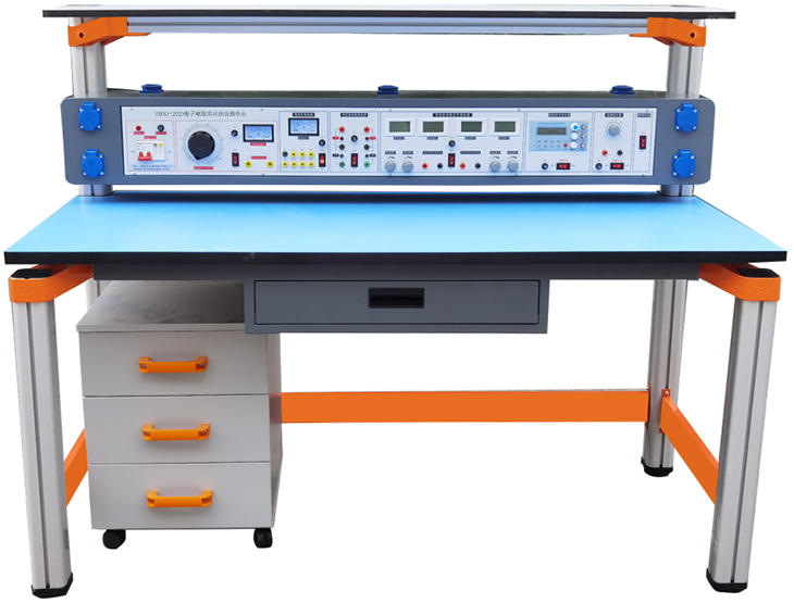 實(shí)驗桌規格為1500mm(長(cháng))*700mm(寬)*1150mm(高),設有一個(gè)抽屜。實(shí)驗桌主體結構全部采用高性能表面氧化的鋁型材及一次成型鋁壓鑄框架連接構件,連接構件采用壓鑄成型工藝(非焊接工藝),經(jīng)機加工、拋丸、噴砂,表面靜電噴涂工藝,安裝方便、快捷,用戶(hù)可自行DIY組裝。桌體立柱采用工業(yè)鋁型材成型工藝,表面氧化處理,截面尺寸:70mm×70mm,四面帶槽,槽寬約8mm,端部裝有注塑成型配套塑料堵頭。桌面采用25mmE1級三聚氰胺飾面板,桌面板下設支撐框架,承受力不少于300kg。配備儲存柜,存放元件及工具,儲存柜底部4只高強度萬(wàn)向可制動(dòng)PU腳輪,方便移動(dòng)。實(shí)訓裝置整體簡(jiǎn)約不簡(jiǎn)單,高端大氣,符合現代化產(chǎn)品審美和發(fā)展趨勢。
