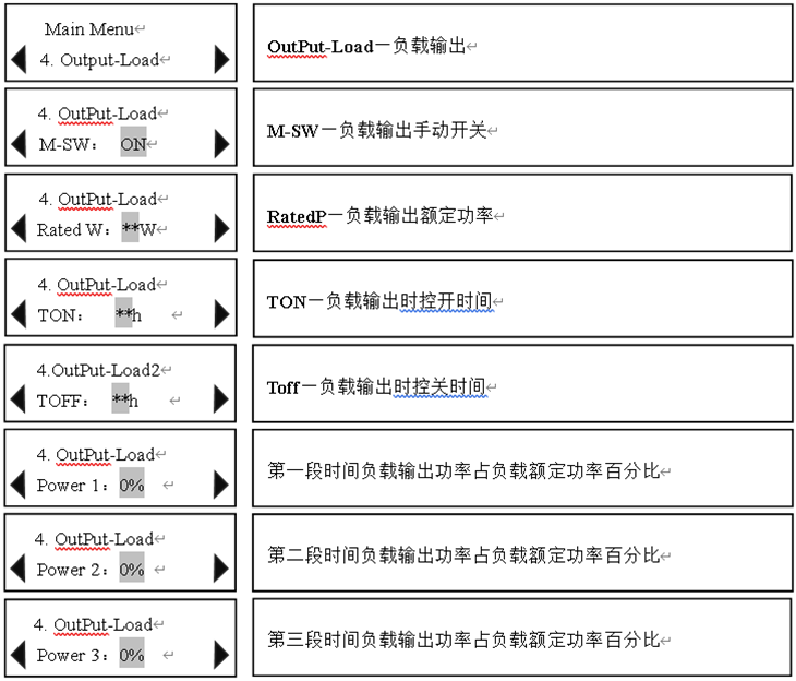 Ø 負載輸出開(kāi)關(guān)功能在控制器上用戶(hù)可以手動(dòng)設置負載端的打開(kāi)或關(guān)閉。