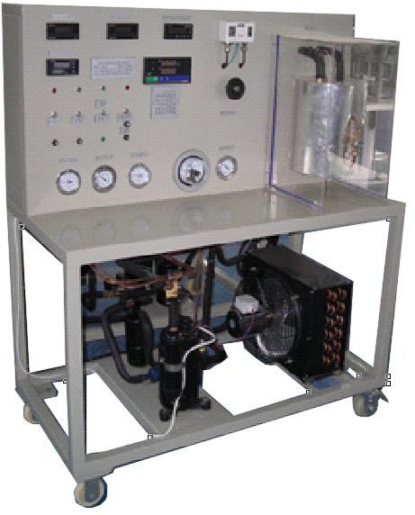 "壓縮機性能試驗臺(電量熱計法)"采用蒸汽壓縮式制冷循環(huán)系統,配備制冷壓縮機、不銹鋼冷凝器、蒸發(fā)器等制冷系統真實(shí)部件,并設有彩色控制屏、制冷劑流量調節控制器,電子膨脹閥,渦輪流量計、壓力變送器、電壓、電流、功率、合相有功功率、各相無(wú)功功率、合相無(wú)功功率、各相視在功率、合相視在功率、采集器。不但能開(kāi)設制冷壓縮機性能參數的測定實(shí)訓,還能進(jìn)行制冷循環(huán)基本原理的演示實(shí)訓。適用于職業(yè)院校制冷專(zhuān)業(yè)相關(guān)課程的教學(xué)實(shí)訓。
