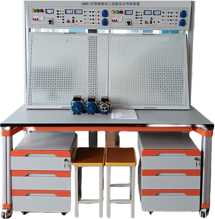 電工基本技能綜合考核實(shí)訓臺由實(shí)訓屏(內置電源)、實(shí)訓桌、實(shí)訓儲物柜三大部分組成。