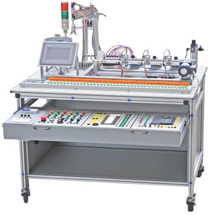 三、功能特點(diǎn) :光機電一體化實(shí)訓設備采用鋁合金導軌式實(shí)訓臺,模塊采用標準結構和抽屜式模塊放置架,互換性強;按具有生產(chǎn)性功能和整合學(xué)習功能的原則確定模塊內容,使教學(xué)或競賽時(shí)可方便的選擇需要的模塊。本設備的PLC模塊的I/O 端子、變頻器的接線(xiàn)端子、各常用模塊與PLC的連接端子,均與安全插座連接,使用帶安全插頭的導線(xiàn)進(jìn)行電路連接;各指令開(kāi)關(guān)、光電開(kāi)關(guān)、傳感器和指示元件的電路,則通過(guò)端子排進(jìn)行連接。插拔線(xiàn)連接電路與端子排連接電路相結合,既保證學(xué)生基本技能的訓練、形成和鞏固,又保證電路連接的快速、安全和可靠。