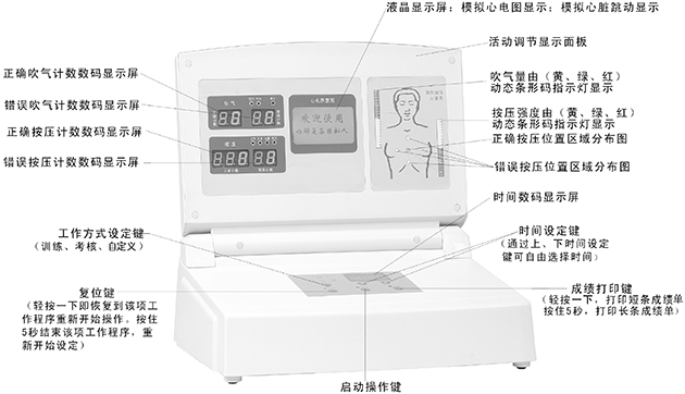 1、訓練:此項操作是讓學(xué)員熟練掌握操作基本要領(lǐng)及各項步驟。當功能設定好,學(xué)員就可以進(jìn)行人工呼吸或胸外按壓。操作正確錯誤有各類(lèi)功能數碼顯示及語(yǔ)音提示。