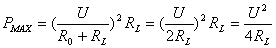 當滿(mǎn)足RL=R0時(shí),負載從電源獲得的最大功率為: