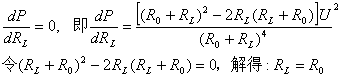 根據數學(xué)求最大值的方法,令負載功率表達式中的RL為自變量,P為應變量,并使dP/dRL=0,即可求得最大功率傳輸的條件: