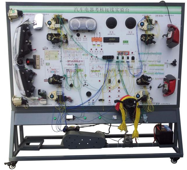 3.設備面板采用耐創(chuàng )擊、耐污染、防火、防潮的高級鋁塑板,表面經(jīng)特殊工藝噴涂底漆處理;面板打印有永不褪色的彩色電路圖;學(xué)員可直觀(guān)對照電路圖和實(shí)物,認識和分析汽車(chē)整車(chē)電器各系統的工作原理。