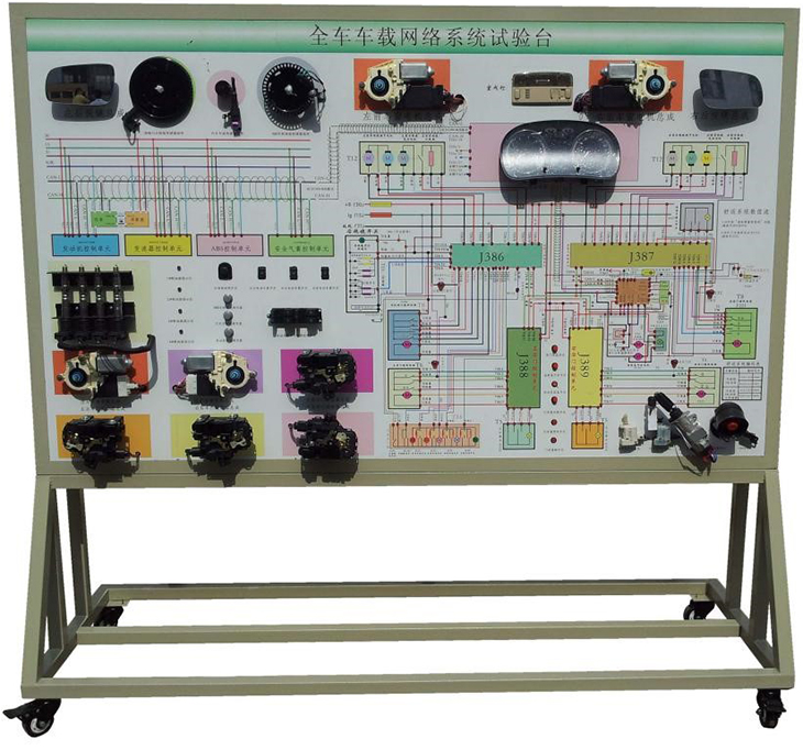 2.示教板面板采用耐撞擊、耐污染、防火、防潮的高級鋁塑板,表面經(jīng)特殊工藝噴涂底漆處理;面板打印有永不褪色的彩色電路圖;學(xué)員可直觀(guān)對照電路圖和實(shí)物,認識和分析車(chē)載網(wǎng)絡(luò )系統的工作原理。