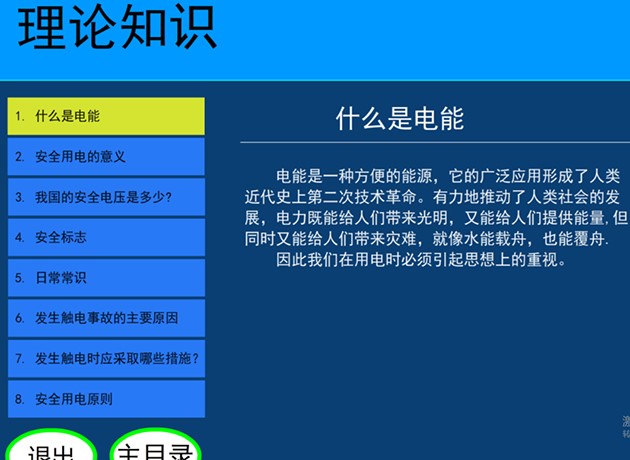 14.用電安全與觸電急救虛擬仿真系統軟件:采用二維與三維結合的虛擬畫(huà)面,使學(xué)生懂得用電的安全和急救方法,設有單相觸電、兩相觸電、跨步觸電、低壓觸電急救、高壓觸電急救、人工呼吸救護法、牽手呼吸救護法、胸外心臟按壓就護法等原理講解與教學(xué),單相觸電分維修帶電斷線(xiàn)、維修插座觸電、室外觸電等原理演示。低壓觸電和高壓觸電教學(xué)主要為學(xué)生講解演示如何解救處于低壓觸電或者高壓觸電時(shí)的人,人工呼吸救護法、牽手呼吸救護法、胸外心臟按壓就護法采用采用3D虛擬仿真技術(shù)展示,經(jīng)過(guò)渲染和潤色,使模型看起來(lái)與真實(shí)部件一般無(wú)二,畫(huà)面逼真。通過(guò)實(shí)訓能夠對學(xué)生進(jìn)行實(shí)訓室安全用電教育,提高學(xué)生的安全意識,使學(xué)生學(xué)會(huì )自救的方法,讓學(xué)生在遇到危險時(shí)能采取一定的安全措施,保護自己,以及熟悉各種電氣事故產(chǎn)生的原因和處理電氣事故的實(shí)用操作措施,減少電氣事故的發(fā)生。
