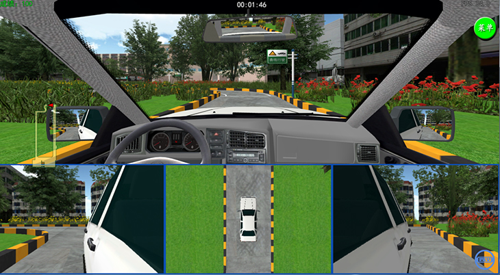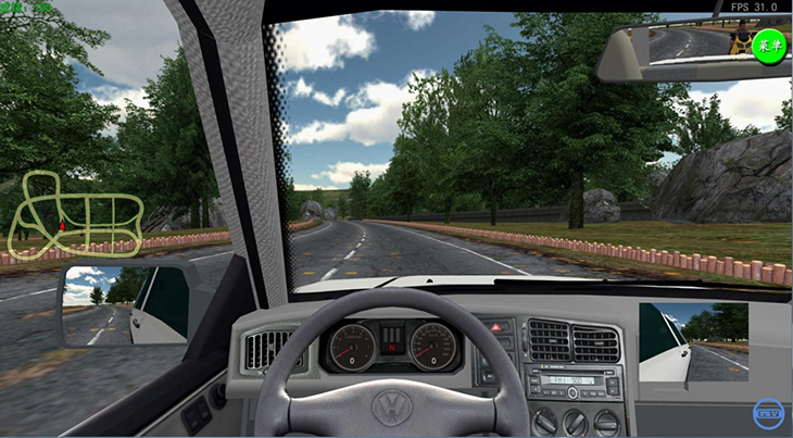 (3)雪天駕駛:突出冰雪路面的轉向、制動(dòng)與控制車(chē)速的操作方法,針對雪天駕駛容易發(fā)生汽車(chē)側滑、甩尾情況指出操作要領(lǐng),真實(shí)模擬雪花與玻璃的碰撞、視線(xiàn)的漸變、雨刮刮過(guò)的效果、車(chē)外后視鏡的模糊等,重點(diǎn)是路面的選擇、汽車(chē)的轉向與制動(dòng)等;