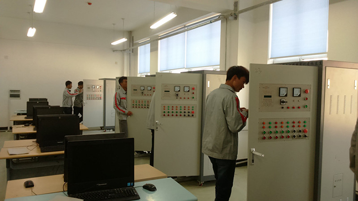 PLC對電機的各種控制。該實(shí)訓室的計算機網(wǎng)絡(luò )系統由25臺計算機及服務(wù)器構成的局域網(wǎng)同步教學(xué)系統,多媒體教學(xué)系統由投影儀、音頻、等現代教學(xué)設備組成。