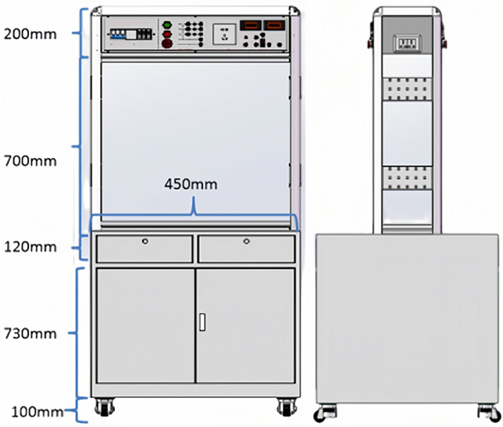 電源輸出區域設計有透明安全防護罩,提高用電的安全性。防護罩開(kāi)合角度大于110度,出線(xiàn)孔為拱門(mén)型設計。
