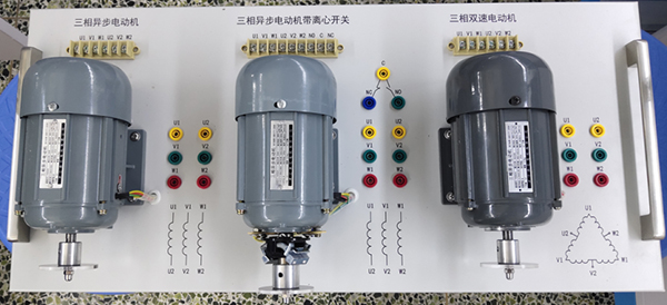 配置三種電機,電機引線(xiàn)通過(guò)端子和強電插座2種方式引出到底板,實(shí)現不同的接線(xiàn)方式。電機配有電機轉盤(pán),底板配有拉絲色把手。