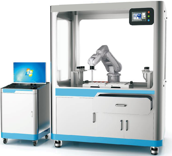 該裝備采用落地式的安裝形式,保證設備的穩定可靠,同時(shí)采用多道防護裝置包含了有機玻璃防護墻、安全門(mén)(安全鎖)系統、安全光幕等硬性保護。以及設有虛擬邊界安全保護系統(沒(méi)有任何肉眼可視的傳感機構,機械手超出設置的邊界,自動(dòng)停止運動(dòng)進(jìn)行安全保護)。