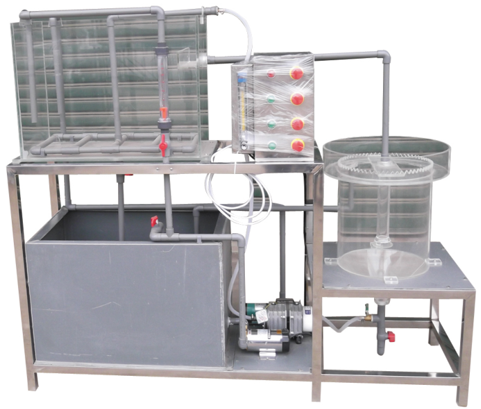 4.曝氣池為透明有機玻璃制造,可觀(guān)察污水在各通道內的運行情況。