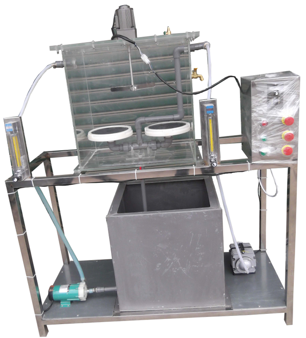 2.反應池:尺寸550×400×500mm,優(yōu)質(zhì)有機玻璃材質(zhì),內裝微孔曝氣盤(pán)。