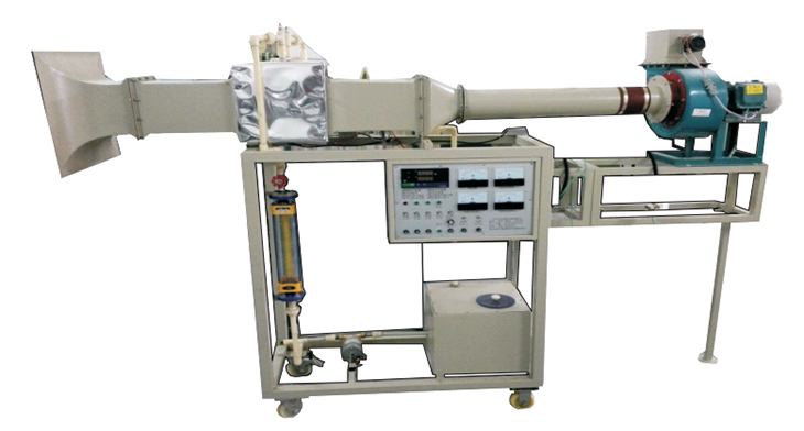 主要配置:氣[空氣]-液[熱水]換熱式。由風(fēng)機、控制箱、測溫系統、翅片管、實(shí)驗風(fēng)筒、不銹鋼實(shí)驗臺、控制箱、斜管微壓計、水泵、流量計、不銹鋼電熱水箱和水循環(huán)系統組成。