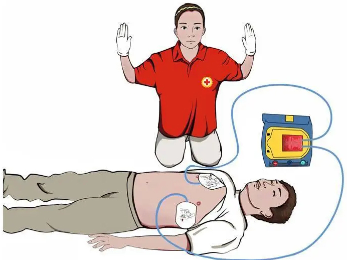 施救者得到除顫指示后,等待AED充電,確保所有人員未接觸患者,按下“電擊”按鈕除顫。