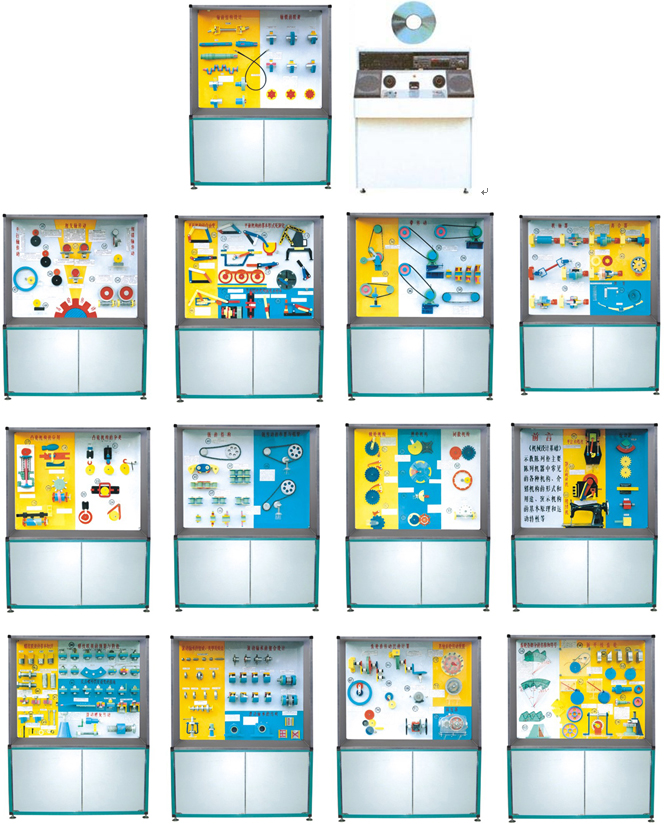 機械設計陳列柜根據全國技工學(xué)校機械類(lèi)通用教材設計開(kāi)發(fā)的《機械設計基礎》示教陳列柜是一套電化教學(xué)設備。本陳列柜共分十三個(gè)柜和一個(gè)電腦控制臺,聲控同步演示,采用單獨驅動(dòng)由電腦或電子設備控制運轉嚴演示,可由DVD控制順序自動(dòng)運行講解,又能根據教材、教學(xué)需要而遙控任意選擇還是單獨演示。模型材料采用進(jìn)口有機板制造,板面附有高級寫(xiě)真作必要的圖表和文字說(shuō)明,演示形象逼真,運行可靠。是一套現代化機械課程教學(xué)設備。