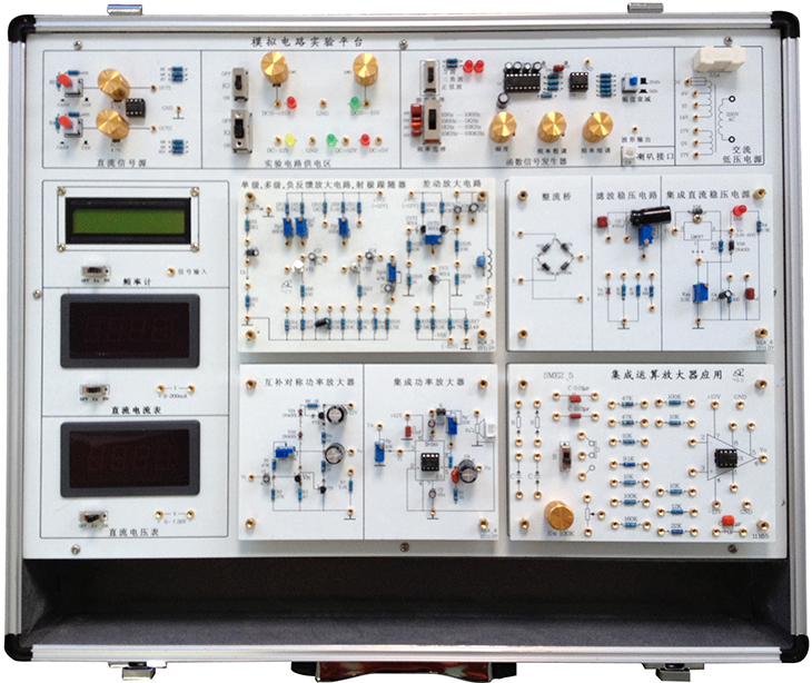 含機箱、工作電源、常用模擬信號源、實(shí)驗電路區 |