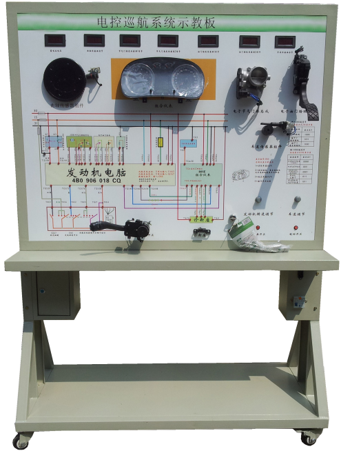 2.示教板面板采用4mm厚耐腐蝕、耐創(chuàng )擊、耐污染、防火、防潮的高級鋁塑板,表面經(jīng)特殊工藝噴涂底漆處理;面板打印有永不褪色的彩色電路圖;學(xué)員可直觀(guān)對照電路圖和實(shí)物,認識和分析汽車(chē)電子巡航系統的工作原理。